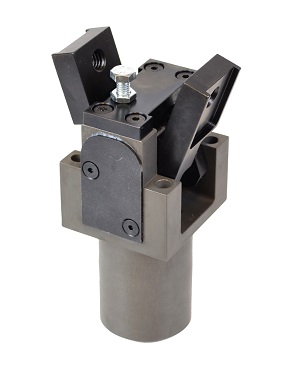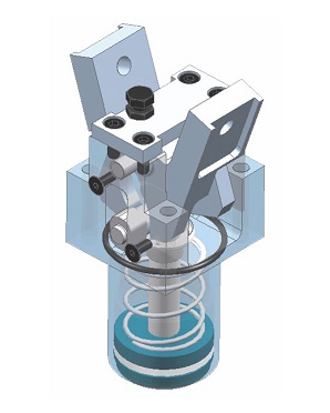 Our Custom Products team developed a tong head gripper design utilizing a locking ramp that locks in place when jaws are fully opened; this eliminates the exposure of the jaws and tooling to additional moments of inertia during gob/bottle transfer onto the conveyor. Our team’s tong head gripper also features a smooth closing with cushioning through the cam slot, reducing risk of defects in the container mouth rim.